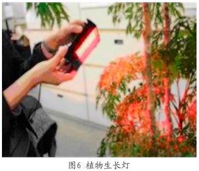 北京宇极最近研发的氮氧化物新产品ZYP660发现在植物生长方面的新用途。如图5所示,蓝光芯片配合ZYP660封装出紫红色的LED,其中红色光谱的峰值波长在660nm,恰好是植物在生长过程需要吸收的红色光谱。将紫红色的LED集中封装为植物生长光照的灯具,如图6所示。在植物生长灯的照射下,植物生长将更加快速,枝叶更加茁壮。